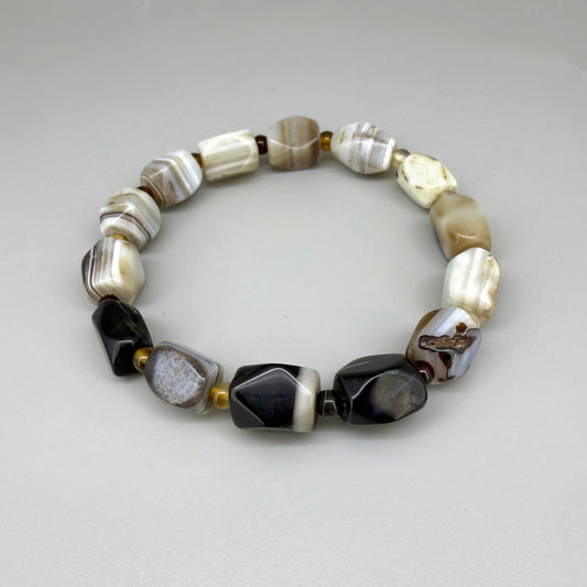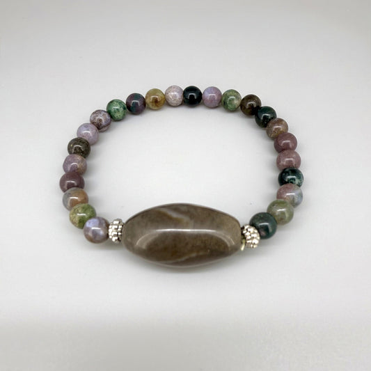 Dragon Vein Agate & Rose Quartz Beaded Bracelet