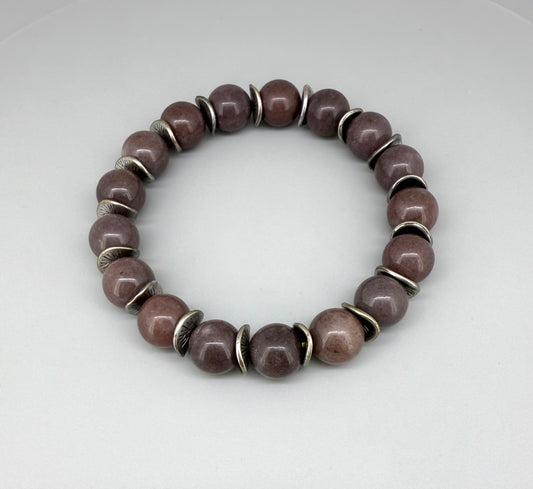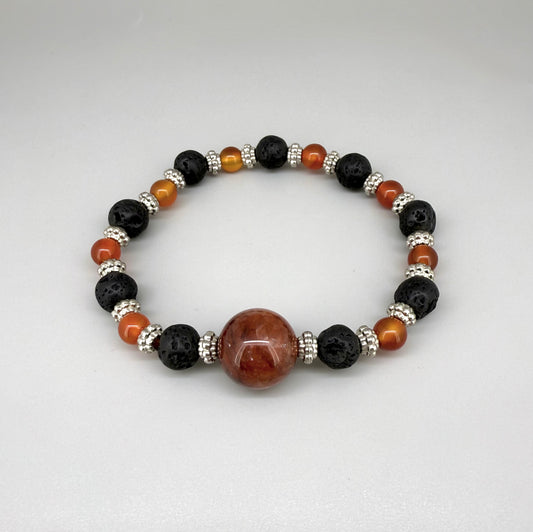 Carnelian, Lava & man-made Cherry Quartz Beaded Bracelet