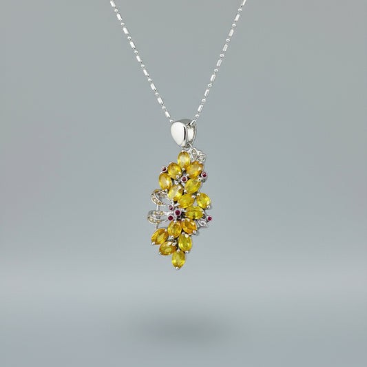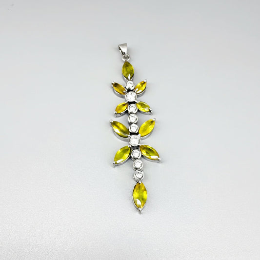 White Gold plated Silver Pendant with Yellow Sapphires & Cubic Zirconia