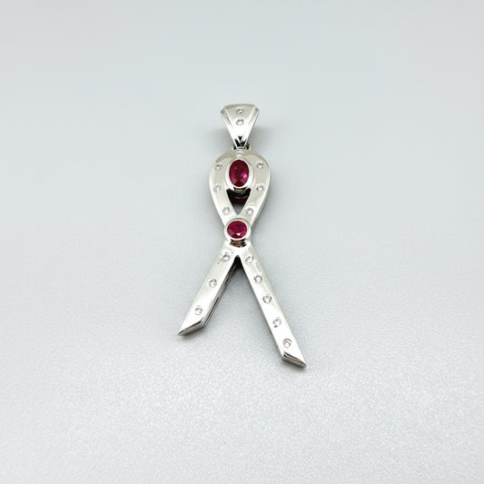 White Gold plated Silver Pendant with Rubellite & Pink Rubies