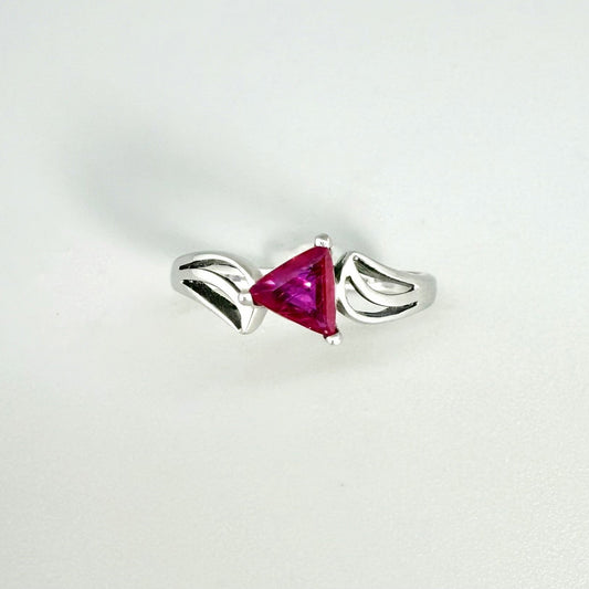 White Gold plated Silver Ring with Ruby & Cubic Zirconia