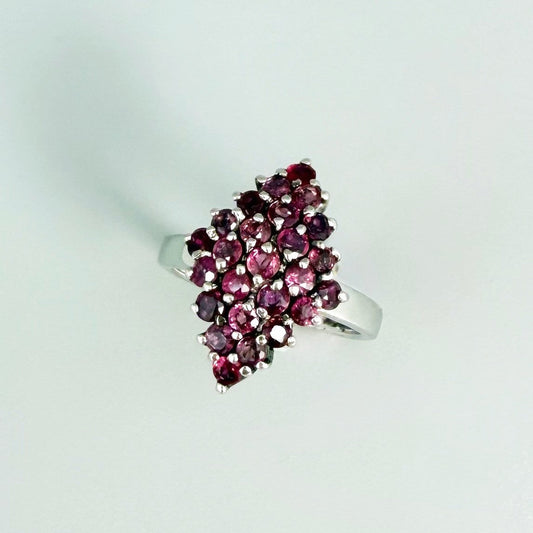 White Gold plated Silver Ring with Sapphire, Citrine & Rhodolite