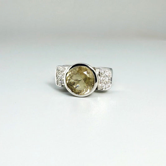 White Gold plated Silver Ring with Citrine & Cubic Zirconia