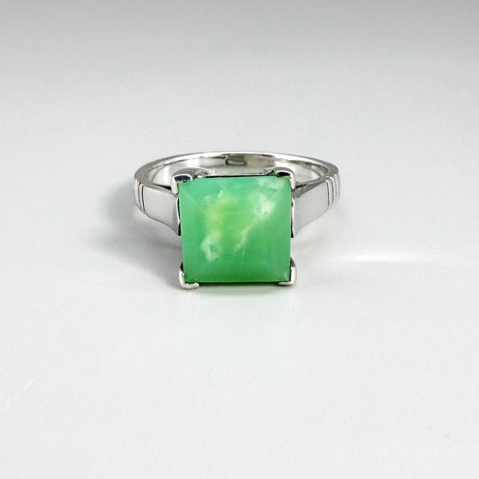 White Gold plated Silver Ring with Chrysoprase & Cubic Zirconia