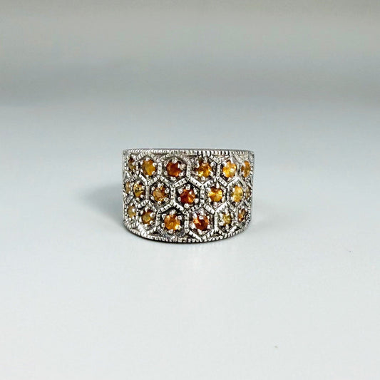 White Gold plated Silver Ring with Citrine & Cubic Zirconia