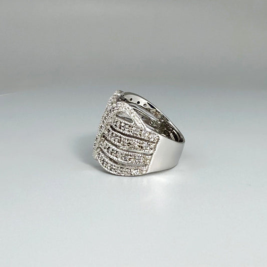 White Gold plated Silver Ring with Lemon Quartz & Cubic Zirconia