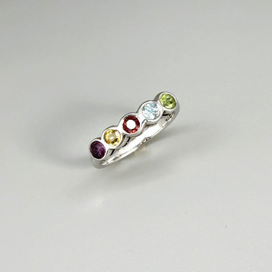 White Gold plated Silver Ring with Citrine, Sapphire, Tourmaline, Rhodolite & Topaz