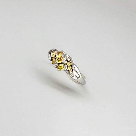 White Gold plated Silver Ring with Lemon Quartz & Sapphires