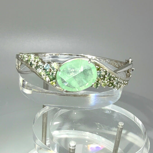 Silver Bangle plated in white gold with Fluorite and Sapphires