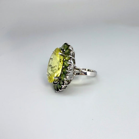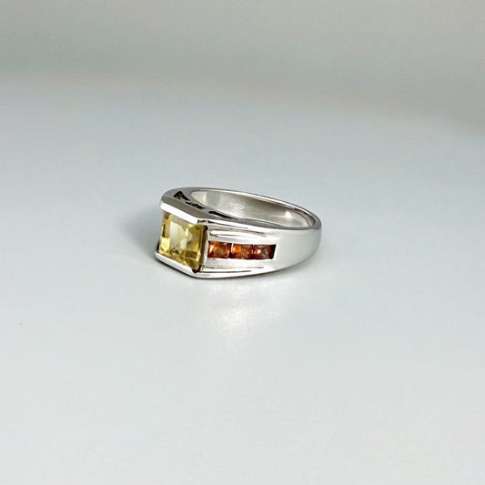 White Gold plated Silver Ring with Lemon Quartz & Sapphires