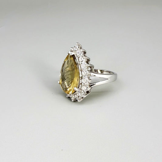 White Gold plated Silver Ring with Lemon Quartz & Cubic Zirconia