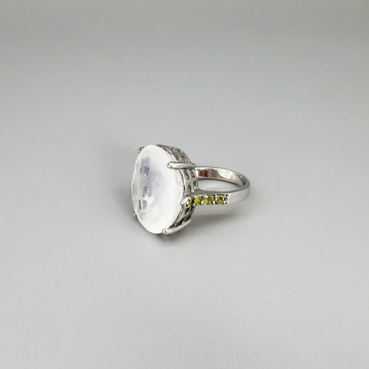 White Gold plated Silver Ring with White Quartz & Sapphires