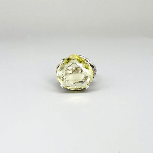White Gold plated Silver Ring with Lemon Quartz & Sapphires