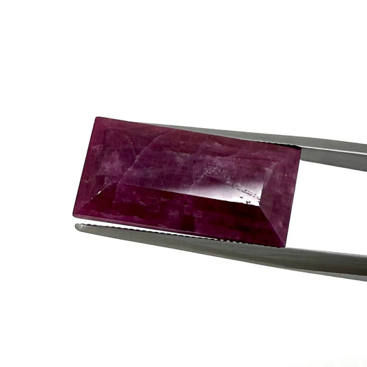 Big Pinkish Red Marbled Ruby Baguette 19.3 Ct