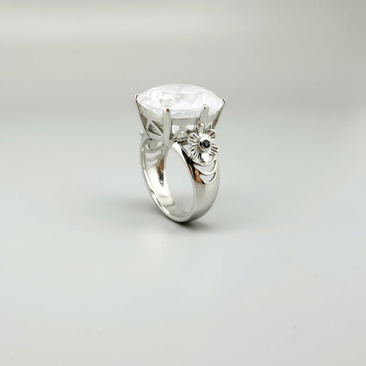 White Gold plated Silver Ring with Moonstone & Sapphires