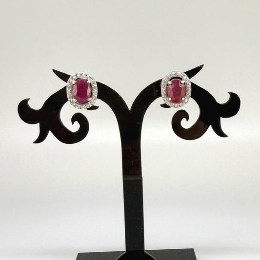 White Gold plated Silver Earrings with Rubies & Cubic Zirconia