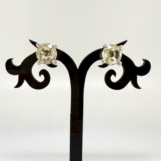 White Gold plated Silver Earrings with Lemon Quartz