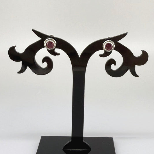 White Gold plated Silver Earrings with Rubies