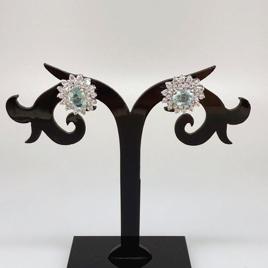 White Gold plated Silver Earrings with Aquamarine & Cubic Zirconia