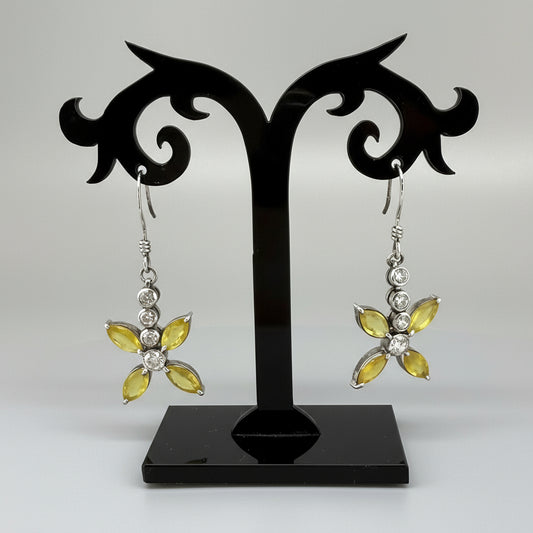 White Gold plated Silver Earrings with Sapphires & Cubic Zirconia