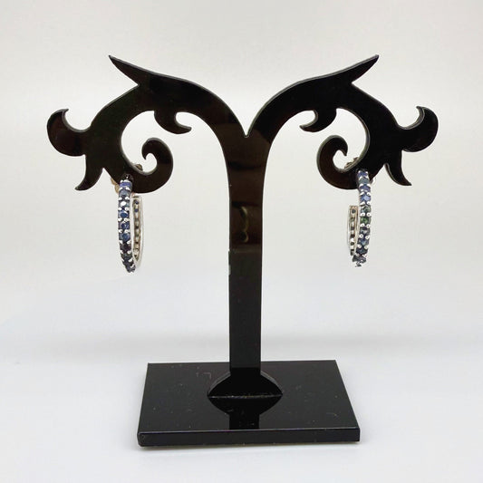 White Gold plated Silver Earrings with Sapphires & Cubic Zirconia